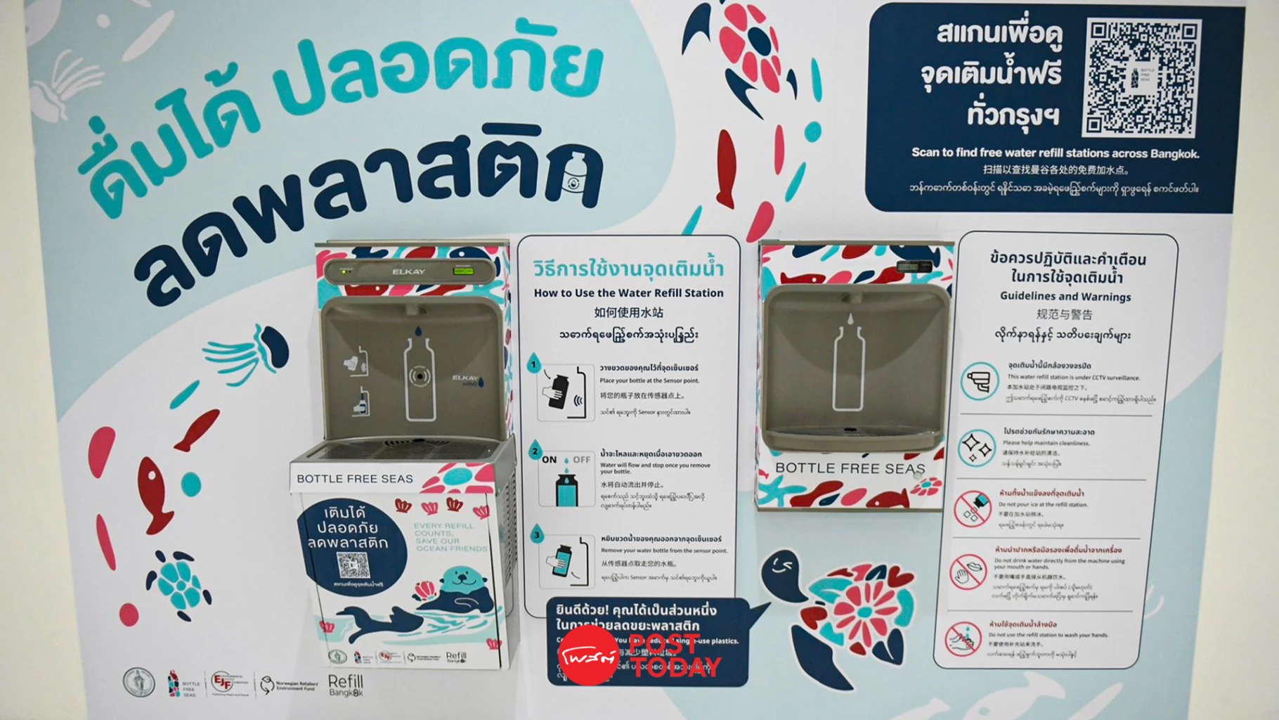 เปิดจุดเติมน้ำฟรี10 จุด! ลดการใช้ขวดพลาสติกไปแล้ว 456,894 ขวด