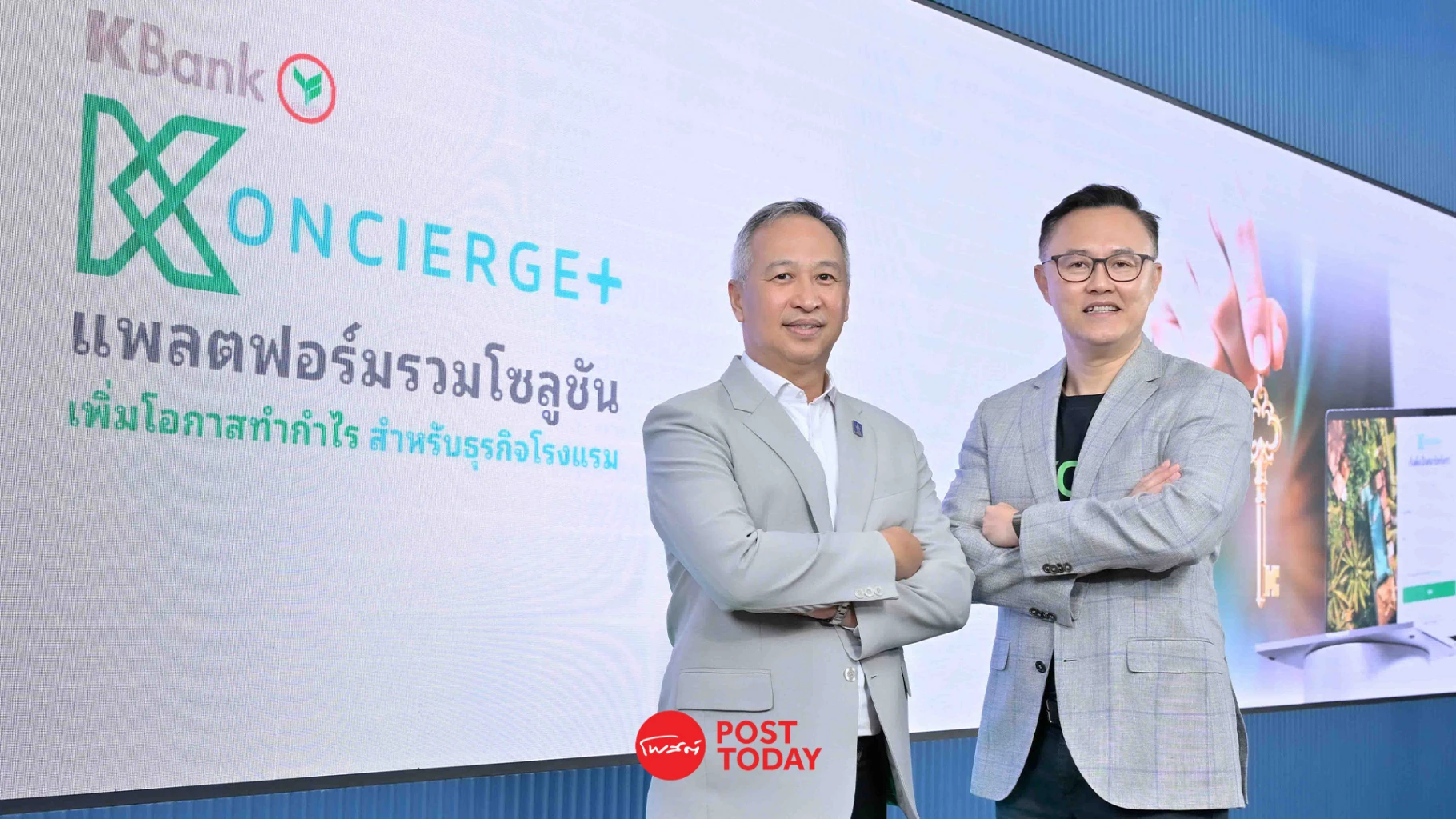 ธนาคารจึงพัฒนา KONCIERGE+ ซึ่งเปิดตัวในวันนี้ เป็นแพลตฟอร์มแรกที่รวมโซลูชันเพื่อธุรกิจโรงแรมแบบครบวงจร ผู้ประกอบการที่ใช้ KONCIERGE+ จะสามารถเข้าถึงเทคโนโลยีที่ช่วยบริหารธุรกิจได้ง่ายขึ้น ลดต้นทุน และเพิ่มรายได้ โดยไม่ต้องเสียเวลาค้นหาโซลูชันด้วยตัวเอง
