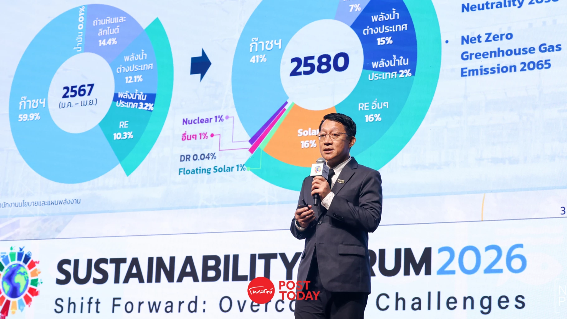 เอกรัฐ สมินทรปัญญา ผู้ช่วยผู้ว่าการแผนงานโรงไฟฟ้า กฟผ. กล่าวในงาน SUSTAINABILITY FORUM 2026 Shift Forward: Overcoming Challenges หัวข้อ Special Talk: EGAT’s Path to a Sustainable Energy Future ว่า กฟผ. ซึ่งเป็นรัฐวิสาหกิจหลักที่มีหน้าที่รับผิดชอบในการผลิต จัดหา ส่ง และขายพลังงานไฟฟ้า ตลอดจนรักษาความมั่นคงของระบบไฟฟ้าของประเทศ ได้ประกาศความมุ่งมั่นที่จะดำเนินการให้สอดคล้องกับทิศทางพลังงานของชาติและเป้าหมายสู่ความเป็นกลางทางคาร์บอน (Carbon Neutrality) และการลดการปล่อยก๊าซเรือนกระจกเป็นศูนย์ ทั้งนี้ ประเทศไทยตั้งเป้าหมายที่จะก้าวไปสู่ความเป็นกลางทางคาร์บอนในปี 2050