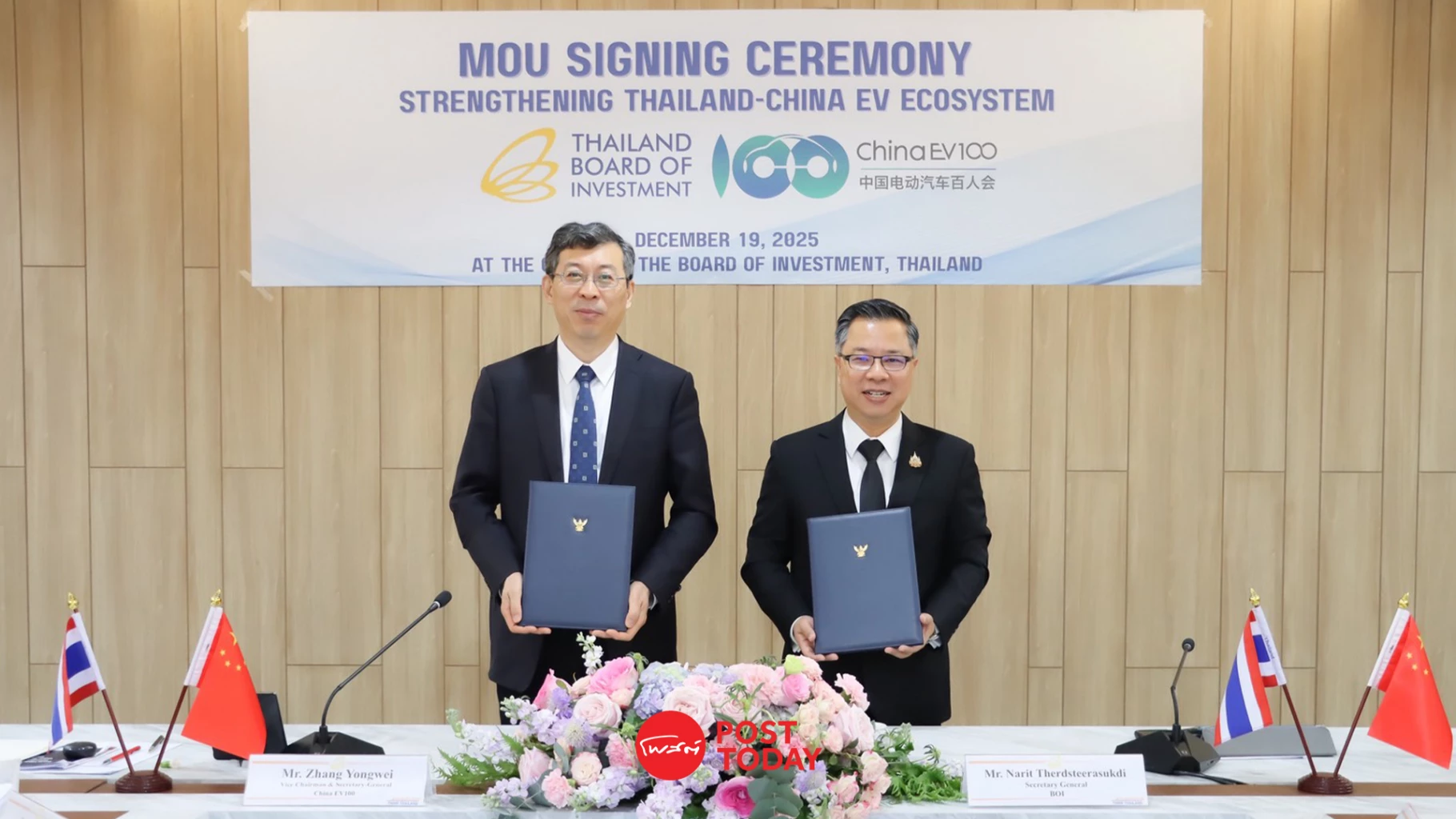 สำนักงานคณะกรรมการส่งเสริมการลงทุน (บีโอไอ) ได้บรรลุข้อตกลงครั้งสำคัญด้วยการลงนามใน บันทึกความเข้าใจ (MOU) ร่วมกับ China EV100 เมื่อวันที่ 19 ธันวาคม 2568