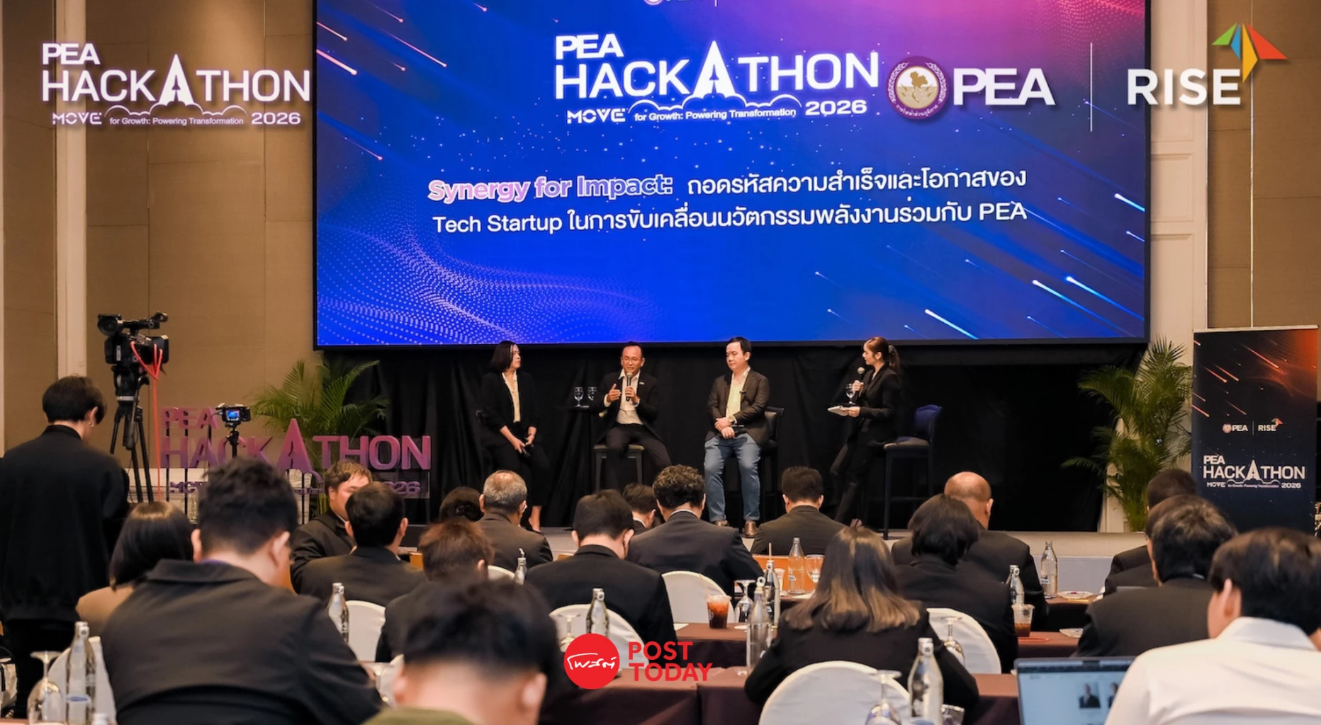 ในเวทีเปิดตัวโครงการ PEA Hackathon 2026 ภายใต้หัวข้อ “Synergy for Impact: ถอดรหัสความสำเร็จและโอกาสของ Tech Startup ในการขับเคลื่อนนวัตกรรมพลังงานร่วมกับ PEA” การไฟฟ้าส่วนภูมิภาค (PEA) สะท้อนภาพการเปลี่ยนผ่านครั้งสำคัญของอุตสาหกรรมพลังงาน