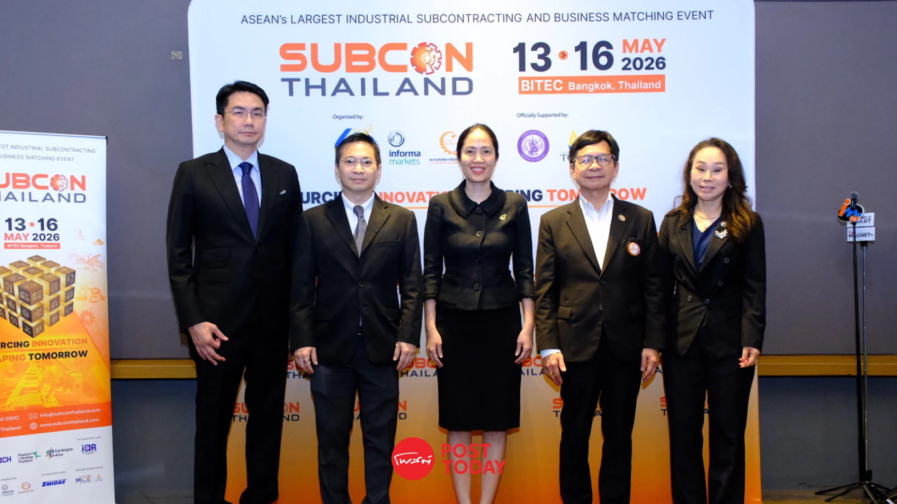 สำนักงานคณะกรรมการส่งเสริมการลงทุน (บีโอไอ) ร่วมกับ อินฟอร์มา มาร์เก็ตส์ ประเทศไทย และ สมาคมส่งเสริมการรับช่วงการผลิตไทย (Thai Subcon) แถลงความพร้อมจัดงาน “SUBCON Thailand 2026” ระหว่างวันที่ 13–16 พฤษภาคม 2569 ณ ไบเทค บางนา เพื่อเป็นฟันเฟืองสำคัญในการขับเคลื่อนอุตสาหกรรมการผลิตไทยสู่เวทีโลก ท่ามกลางกระแสการปรับตัวของซัพพลายเชนทั่วโลกที่มุ่งสู่เทคโนโลยีขั้นสูง