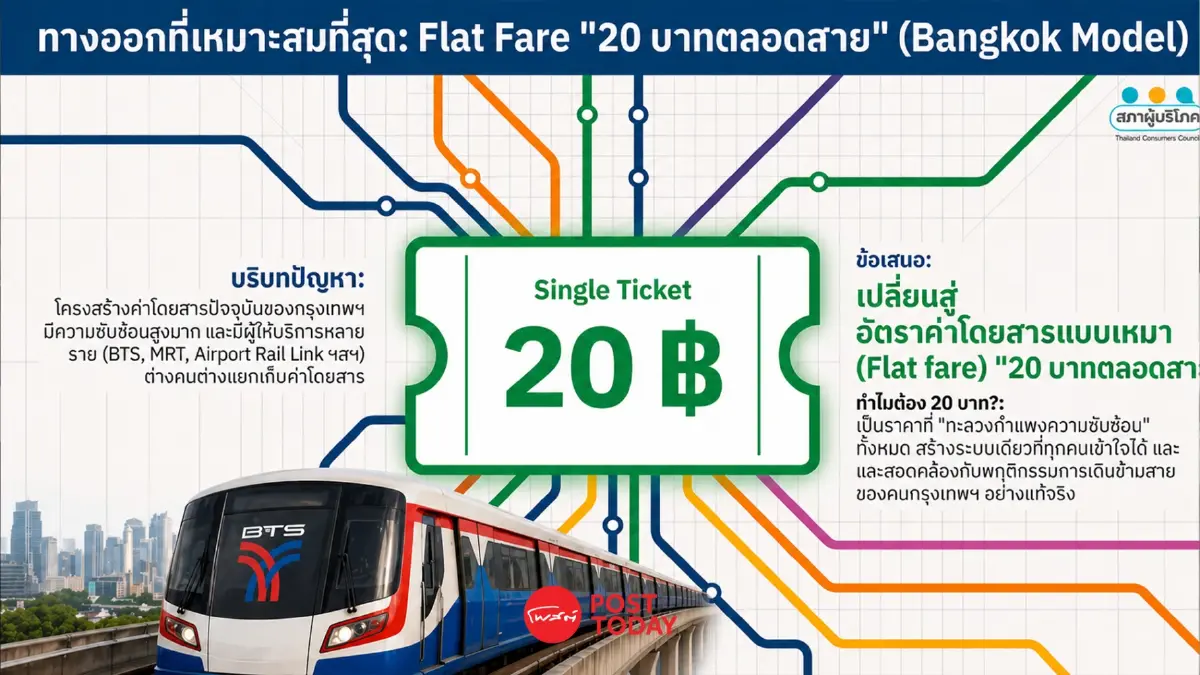 สภาผู้บริโภคชี้ ค่าโดยสารรถไฟฟ้าไม่ควรเกิน 10% ของค่าแรง เสนอ 20-40 บาทตลอดสาย ทำได้จริง หากรัฐเปิดต้นทุน โปร่งใส และใช้กลไกภาษีหนุนลดภาระประชาชน