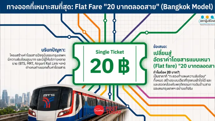 ทั้งนี้ เพื่อสร้างความเป็นธรรมที่แท้จริง นโยบายราคาต้องยึดหลักเกณฑ์ของธนาคารโลก (World Bank) คือค่าเดินทางต้อง "ไม่เกิน 10% ของค่าแรงขั้นต่ำ" หรือไม่เกิน 40 บาทต่อวัน หากเปรียบเทียบกับเยอรมนีที่มีโมเดลตั๋วรายเดือนราคาประมาณ 330 บาท (9-49 ยูโร) ในขณะที่แรงงานไทยบางกลุ่มต้องจ่ายค่ารถไฟฟ้าสูงถึง 200 บาทต่อวัน จะเห็นความเหลื่อมล้ำที่น่าตกใจ การเปลี่ยนนโยบายรายวันแบบ "โยนหินถามทาง" นอกจากจะสร้างความสับสนแล้ว ยังสะท้อนถึงการขาดหลักการที่ยึดถือประโยชน์ของผู้บริโภคเป็นศูนย์กลางอย่างแท้จริง