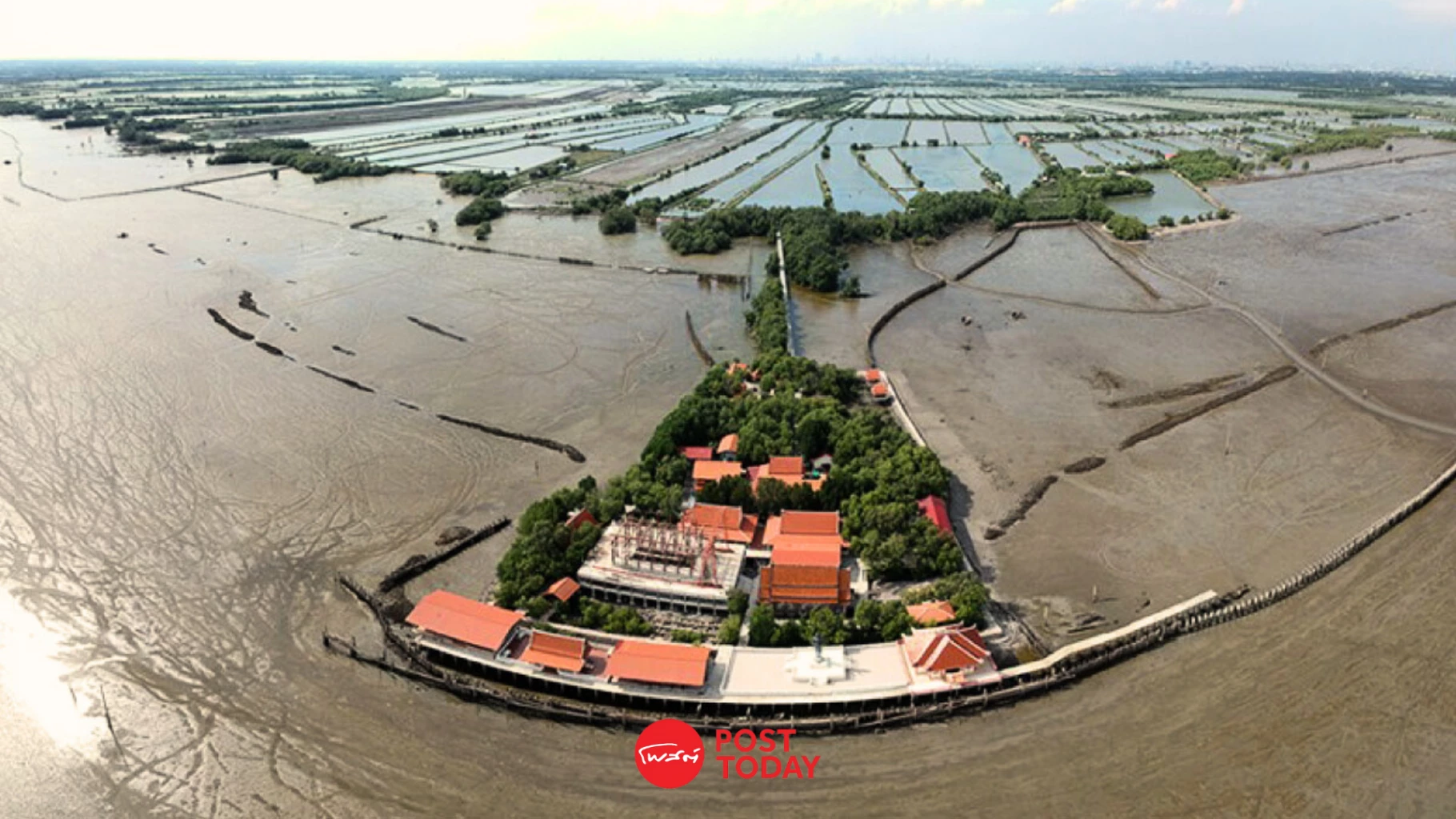 นักวิชาการเตือน โลกร้อนกัดเซาะชายฝั่งทะเลในกทม.และสมุทรปราการ เสี่ยงต่อน้ำท่วมทั้งหมดในปี 2050 ชี้หลักฐานคือวัดขุนสมุทรจีน จากที่เคยมีที่ 76 ไร่เหลือ 5 ไร่!