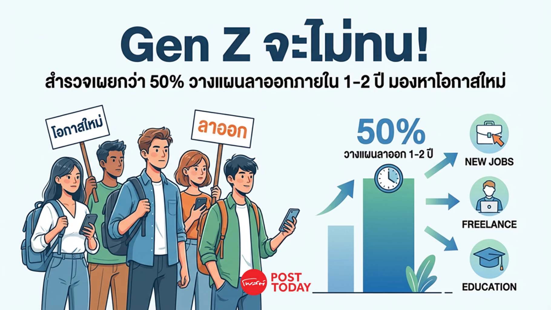 Gen Z จะไม่ทน! สำรวจเผยกว่า 50% วางแผนลาออกภายใน 1–2 ปี มองหาโอกาสใหม่