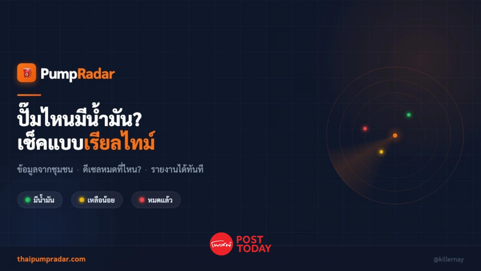 PumpRadar แพลตฟอร์มเช็กสถานะน้ำมันปั๊มแบบเรียลไทม์ ฝีมือคนไทย ใช้พลังชุมชนอัปเดตข้อมูล ช่วยลดปัญหาน้ำมันหมดปั๊มที่เกิดถี่ขึ้น