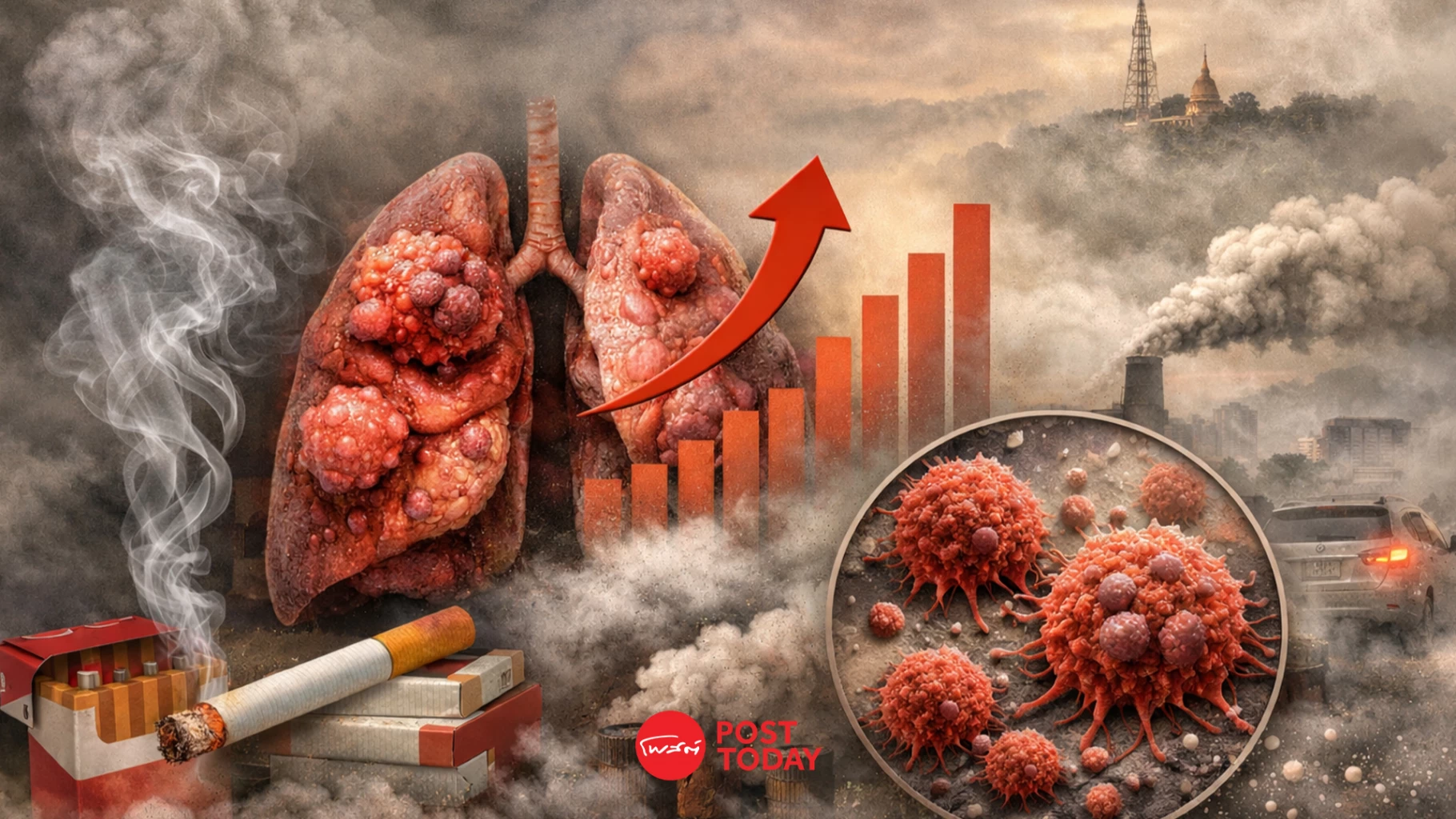 สถานการณ์ดังกล่าวยิ่งทวีความรุนแรงในพื้นที่จังหวัดเชียงใหม่และภาคเหนือ ซึ่งต้องเผชิญวิกฤตฝุ่น PM 2.5 อย่างหนักต่อเนื่องหลายปี โดยเฉพาะช่วงเดือนกุมภาพันธ์ถึงเมษายน ที่ค่าฝุ่นมักพุ่งสูงเกินค่ามาตรฐานขององค์การอนามัยโลก (WHO) หลายเท่าตัว มลพิษเหล่านี้เปรียบเสมือนสารก่อมะเร็งขนาดจิ๋วที่กระตุ้นการอักเสบเรื้อรังและทำให้เซลล์ปอดกลายพันธุ์ ส่งผลให้แม้แต่กลุ่มผู้ไม่สูบบุหรี่ก็มีความเสี่ยงสูง