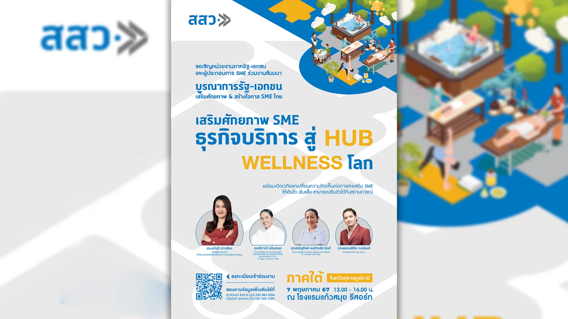 สำนักงานส่งเสริมวิสาหกิจขนาดกลางและขนาดย่อม (สสว.) เชิญชวน SME ภาครัฐ-เอกชน ในพื้นที่ภาคใต้ร่วมงานสัมมนา “เสริมศักยภาพ SME ธุรกิจบริการ สู่ HUB WELLNESS โลก”