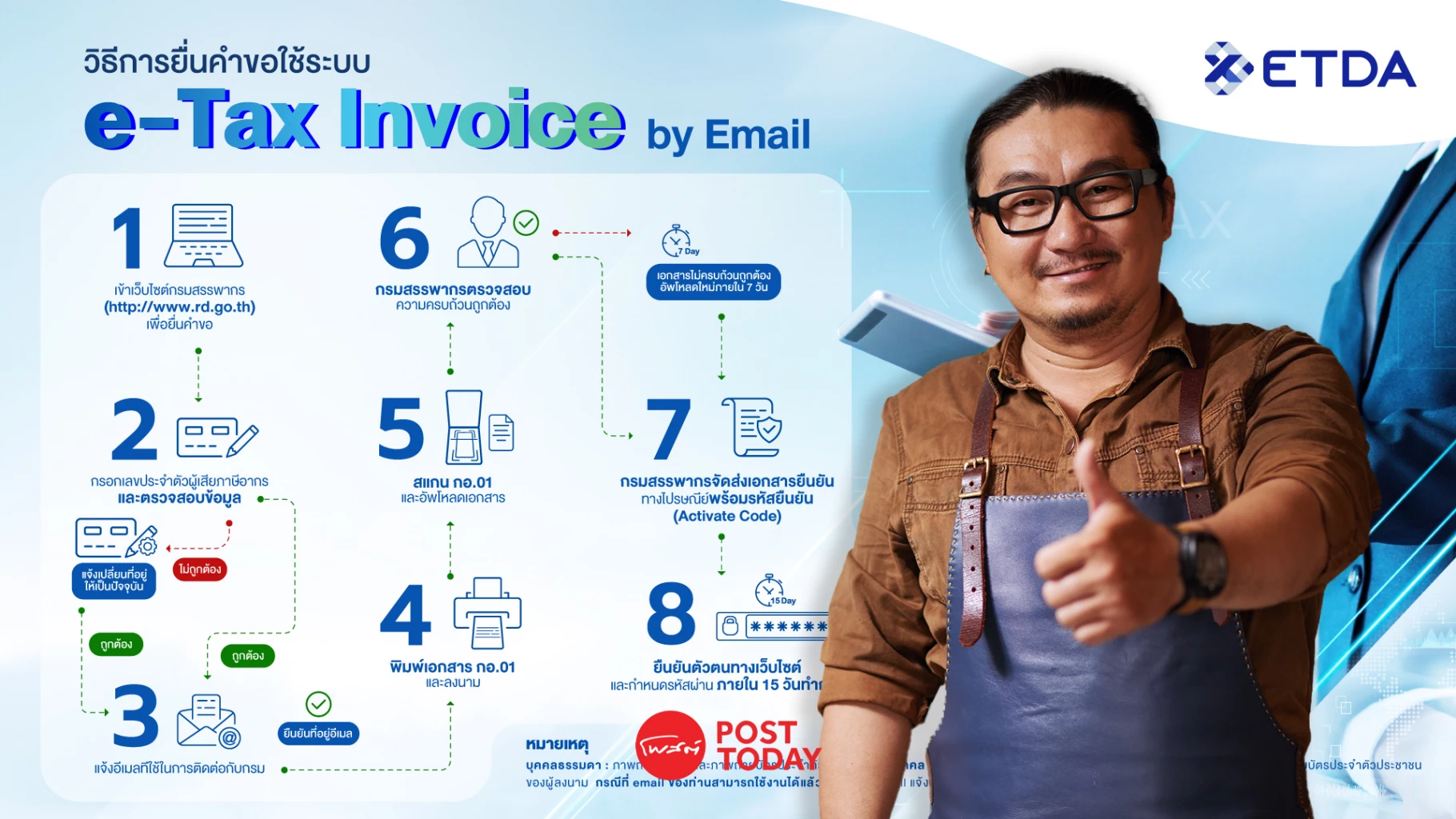 สำหรับในส่วนของ ETDA จะเรียกว่า “e-Tax Invoice by Email” โดยทั้ง 2 ชื่อนี้หมายถึงระบบเดียวกันที่จะช่วยลดต้นทุนและสร้างความน่าเชื่อถือให้กับธุรกิจ ซึ่งผู้ประกอบการสามารถจัดทำและส่งใบกำกับภาษีอิเล็กทรอนิกส์ผ่านอีเมลด้วยการประทับรับรองเวลา (e-Timestamping)
