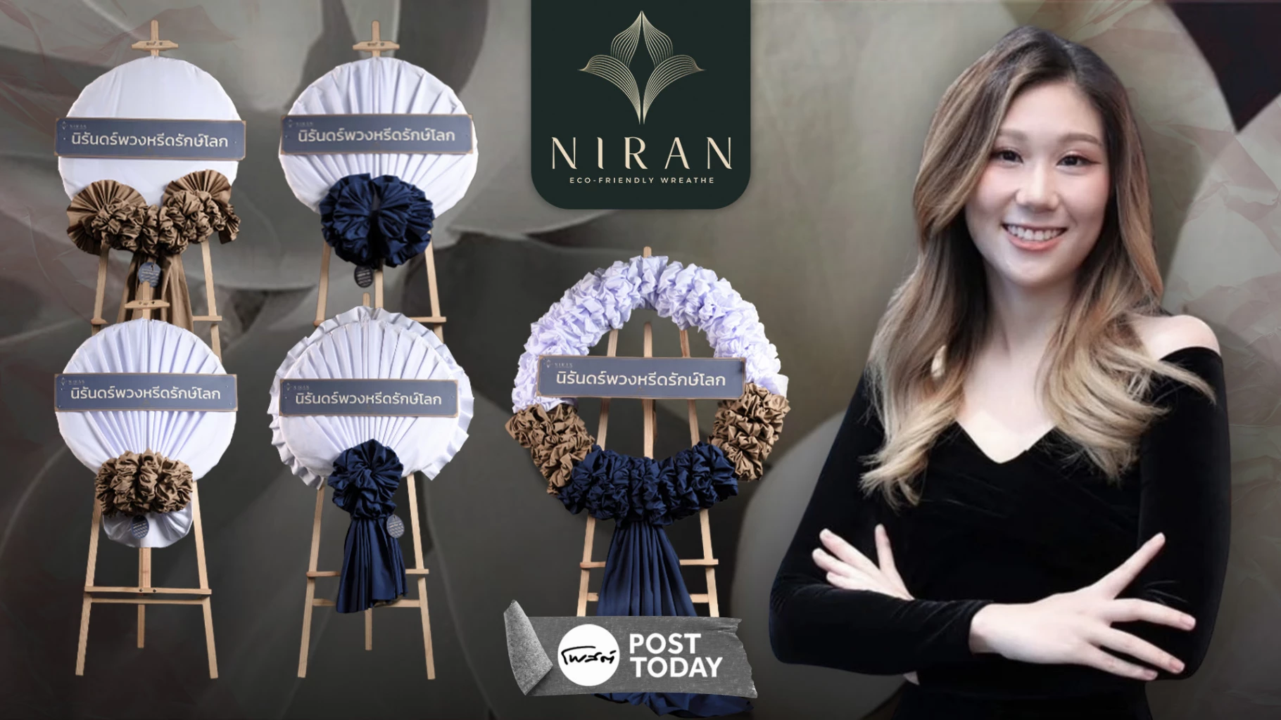 “นิรันดร์” (Niran) คือพวงหรีดทางเลือกที่ออกแบบมาเพื่อเป็น สัญลักษณ์แห่งการไว้อาลัยอย่างยั่งยืน ผลิตจาก ผ้าดิบ แทนดอกไม้สด โดยกว่า 50% ของผ้าที่ใช้เป็นผ้ารีไซเคิล (Recycle Fiber) และโรงงานทอผ้าของครอบครัวทั้งหมดใช้พลังงานจาก โซลาร์เซลล์ (Solar Cell) เพื่อให้ทุกขั้นตอนการผลิตเป็นมิตรต่อสิ่งแวดล้อมมากที่สุด