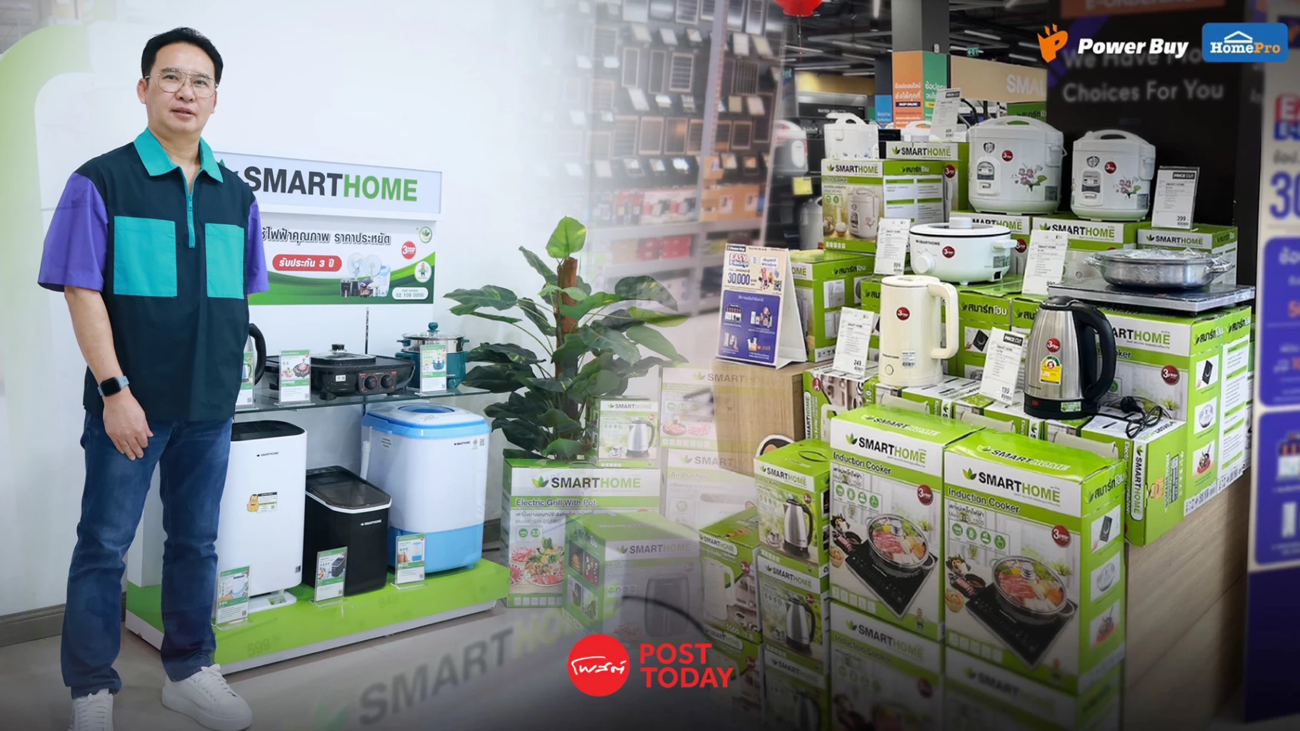 "ธวัช มานะวงศ์" กรรมการบริหาร บริษัท สเต็ป ฟอร์เวิร์ด กรุ๊ป จำกัด ผู้นำเข้าและจำหน่ายเครื่องใช้ไฟฟ้า ภายใต้แบรนด์ "Smarthome" (สมาร์ทโฮม) เปิดเผยว่า สมาร์ทโฮมเตรียมส่งโปรโมชั่นแรงต่อเนื่องทั้งในหน้าร้านและช่องทางออนไลน์ทั่วประเทศ พร้อมจับมือพันธมิตรค้าปลีกชั้นนำและแพลตฟอร์มอีคอมเมิร์ซ เช่น Shopee, Lazada และ TikTok Shop