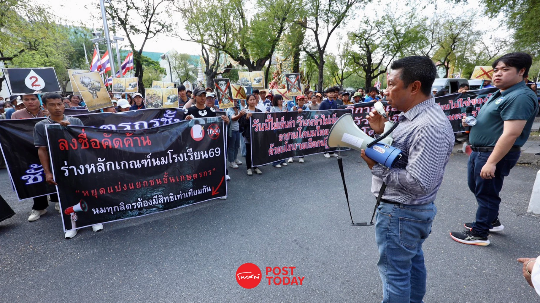 ที่กระทรวงเกษตรและสหกรณ์ ภาคีเครือข่ายเกษตรกรผู้เลี้ยงโคนมไทย เกษตรกรผู้เลี้ยงโคนมทั่วประเทศ สมาคมโคนมก้าวหน้า สมาคมกลุ่มเกษตรกรผู้รวบรวมน้ำนมดิบ สมาคมผู้ผลิตนมพาสเจอร์โรส์ สมาคม SME ผู้รวบรวมน้ำนมติบและแปรรูป รวมตัวยื่นหนังสือต่อนายวิณะโรจน์ ทรัพย์ส่งสุข ปลัดกระทรวงเกษตรและสหกรณ์ เพื่อร่วมคัดค้านร่างหลักเกณฑ์จัดสรรสิทธิ "นมโรงเรียน" ที่สร้างความไม่เป็นธรรมและทำลายอาชีพเกษตรกร