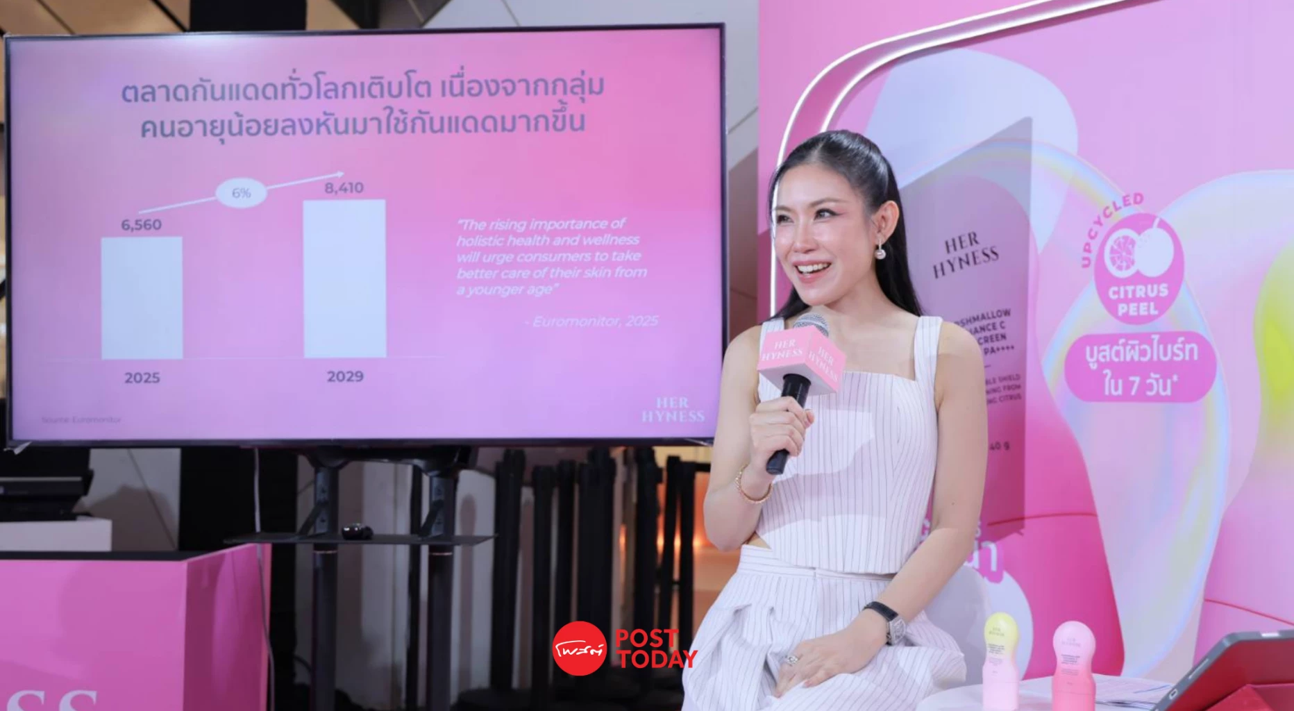 ขณะเดียวกัน Euromonitor ปี 2025 ชี้ว่าตลาด Sun Care ในไทยมีแนวโน้มเติบโตต่อเนื่อง โดยมีมูลค่า 6,560 ล้านบาทในปี 2025 และคาดว่าจะขยับขึ้นเป็น มากกว่า 8,400 ล้านบาทภายในปี 2029