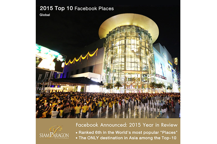 ศูนย์การค้าสยามพารากอน ติดอันดับ 6 สถานที่ที่ถูกพูดถึงมากที่สุดของโลก บน Facebook เว็บไซต์สังคมออนไลน์ในปี 2558