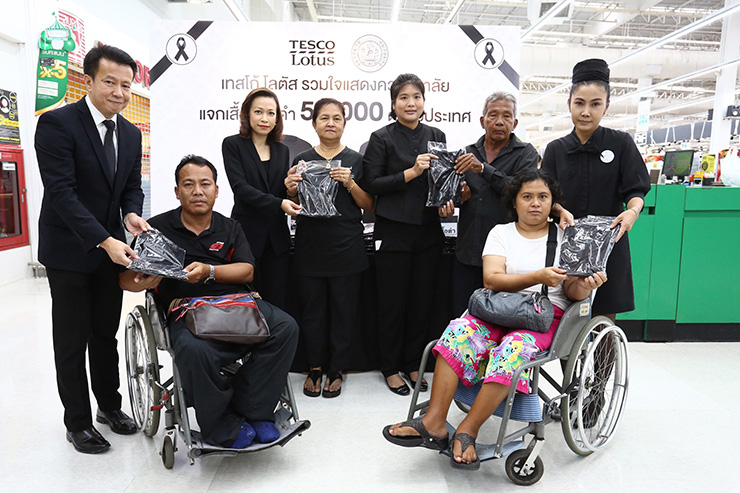 4 พฤศจิกายน 2559 – นางสาวสลิลลา สีหพันธุ์ รองประธานกรรมการฝ่ายกิจการบรรษัท เทสโก้ โลตัส ร่วมกับผู้บริหารเทสโก้ โลตัส แจกจ่ายเสื้อยืดสีดำจำนวน 500 ตัว ให้กับประชาชน ณ เทสโก้ โลตัส รัตนาธิเบศร์ ซึ่งเป็นหนึ่งใน 40 สาขาที่เทสโก้ โลตัส แจกเสื้อยืดสีดำฟรีรวมทั้งหมด 20,000 ตัว ตามที่ เทสโก้ โลตัส ได้ร่วมมือกับกรมการค้าภายใน กระทรวงพาณิชย์ จัดโครงการแจกจ่ายเสื้อยืดสีดำจำนวนทั้งหมด 55,000 ตัว ให้กับประชาชน เพื่อสวมใส่แสดงความไว้อาลัย พระบาทสมเด็จพระปรมินทรมหาภูมิพลอดุลยเดช