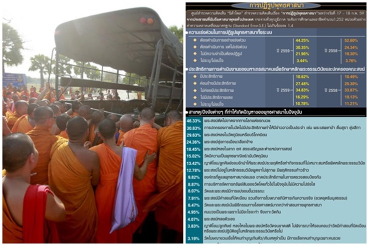 ศูนย์สำรวจความคิดเห็น “นิด้าโพล” สถาบันบัณฑิตพัฒนบริหารศาสตร์ (นิด้า) เปิดเผยผลสำรวจความคิดเห็นของประชาชนเรื่อง “การปฏิรูปพุทธศาสนา” ทำการสำรวจระหว่างวันที่ 17 – 18 กุมภาพันธ์ 2559 จากประชาชนที่นับถือศาสนาพุทธทั่วประเทศ กระจายทุกระดับการศึกษาและอาชีพ รวมทั้งสิ้น จำนวน 1,252 หน่วยตัวอย่าง