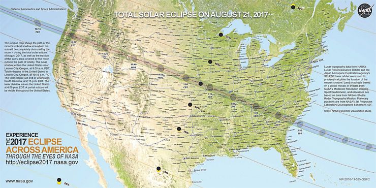 สำคัญเพราะพาดผ่านหลายรัฐ ครอบคลุมพื้นที่เป็นบริเวณกว้าง ไม่มีแนวสุริยุปราคาเต็มดวงที่ลากจากชายฝั่งด้านหนึ่งไปถึงอีกด้านหนึ่งของสหรัฐ เช่นนี้นับตั้งแต่ปี 2461 ในสมัยสงครามโลกครั้งที่หนึ่ง หากไม่มีเมฆบัง คาดว่าชาวอเมริกันหลายสิบล้านคนจะมีโอกาสสังเกตสุริยุปราคาเต็มดวงได้ด้วยตาของตนเอง