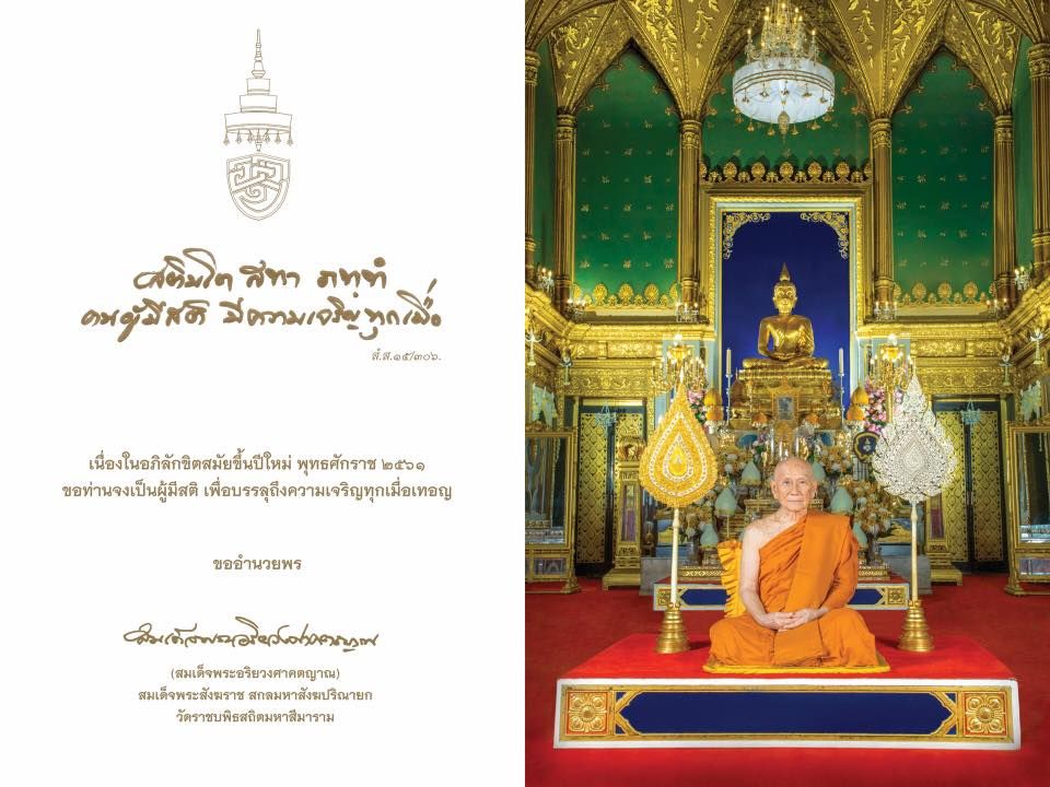 เมื่อวันที่ 18 ธ.ค.  สำนักงานเลขานุการสมเด็จพระสังฆราช เปิดเผยว่า เนื่องในอภิลักขิตสมัยขึ้นปีใหม่ พุทธศักราช 2561 เจ้าพระคุณ สมเด็จพระอริยวงศาคตญาณ สมเด็จพระสังฆราช สกลมหาสังฆปริณายก โปรดประทานพระรูป ฉายเบื้องหน้าพระพุทธอังคีรส ประธานพระอุโบสถ วัดราชบพิธสถิตมหาสีมาราม แวดล้อมด้วยพัดพระยศสมเด็จพระสังฆราช ที่ทรงได้รับพระราชทานถวายในพระราชพิธีสถาปนาสมเด็จพระสังฆราช 12 กุมภาพันธ์ 2560 และพัดแฉกงาพิเศษประดับพลอย ที่ทรงได้รับพระราชทานถวายในการพระราชกุศลฉลองพระชนมายุ 90 พรรษา 26 มิถุนายน 2560