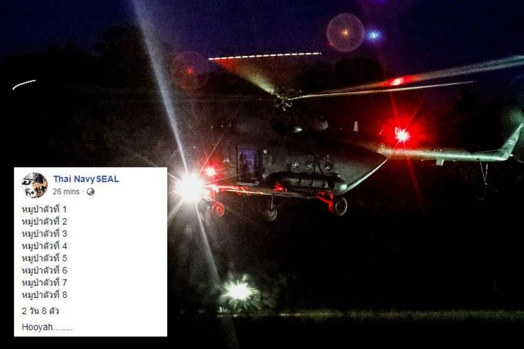 "2 วัน 8 ตัว Hooyah...." หน่วยซีลแจ้งข่าวดีพาทีมหมูป่าออกจากถ้ำหลวง ผู้คนร่วมแสดงความยินดีและขอบคุณการปฏิบัติหน้าที่ของเจ้าหน้าที่