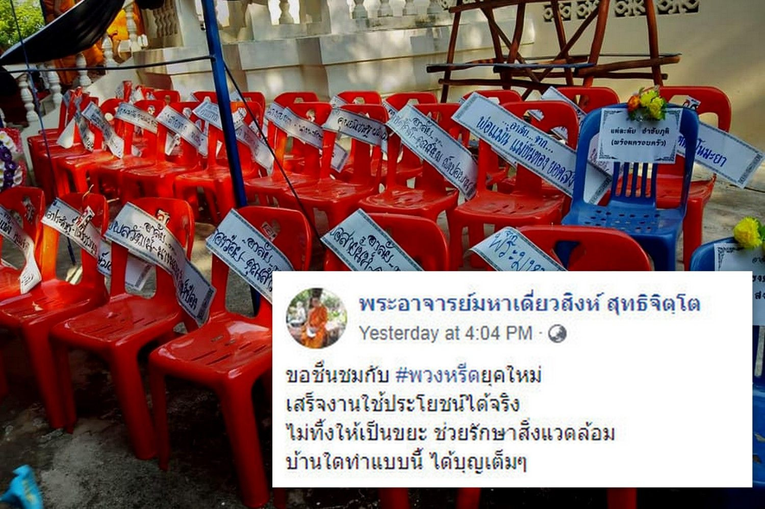 พระสงฆ์ชื่นชม "พวงหรีดเก้าอี้" ไม่ทิ้งเป็นขยะแต่นำไปใช้ประโยชน์ต่อได้