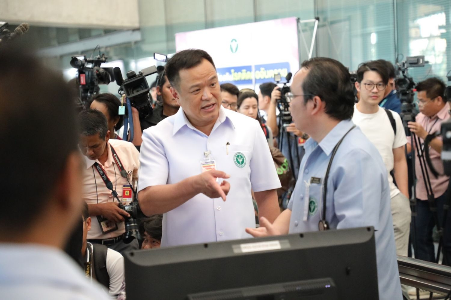 จากกรณีที่พบผู้ป่วยโรคปอดอักเสบจากเชื้อไวรัสที่ยังไม่ทราบที่มา ในประเทศจีน ล่าสุด เมื่อวันที่ 5 ม.ค.63 ที่ท่าอากาศยานสุวรรณภูมิ จังหวัดสมุทรปราการ นายอนุทิน ชาญวีรกูล รองนายกรัฐมนตรีและรัฐมนตรีว่าการกระทรวงสาธารณสุข พร้อมด้วยนายพิพัฒน์ รัชกิจประการรัฐมนตรีว่าการกระทรวงการท่องเที่ยวและกีฬา, นายแพทย์สุขุม กาญจนพิมาย ปลัดกระทรวงสาธารณสุข และคณะ