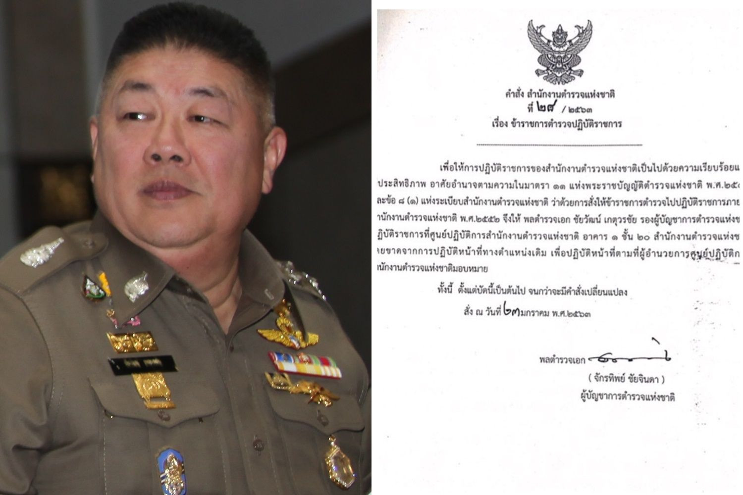 เมื่อวันที่ 24 ม.ค.63 ที่สำนักงานตำรวจแห่งชาติ (ตร.) พล.ต.อ.จักรทิพย์ ชัยจินดา ผู้บัญชาการตำรวจแห่งชาติ (ผบ.ตร.) มีคำสั่งสำนักงานตำรวจแห่งชาติ ที่ 28/2563 ลงวันที่ 23 ม.ค. เรื่องข้าราชการตำรวจปฎิบัติราชการ ใจความว่า เพื่อให้การปฎิบัติราชการของสำนักงานตำรวจแห่งชาติ เป็นไปด้วยความเรียบร้อยและมีประสิทธิภาพ อาศัยอำนาจตามความในมาตรา 11 แห่งพระราชบัญญัติตำรวจแห่งชาติ พ.ศ.2547 และข้อ 8(1) แห่งระเบียบสำนักงานตำรวจแห่งชาติ ว่าด้วยการสั่งให้ข้าราชการตำรวจไปปฎิบัติราชการภายในสำนักงานตำรวจแห่งชาติ พ.ศ.2552 จึงให้ พล.ต.อ.ชัยวัฒน์ เกตุวรชัย รองผู้บัญชาการตำรวจแห่งชาติ ปฎิบัติราชการที่ศูนย์ปฎิบัติการสำนักงานตำรวจแห่งชาติ อาคาร 1 ชั้น 20 สำนักงานตำรวจแห่งชาติ โดยขาดจากการปฎิบัติหน้าที่ทางตำแหน่งเดิม เพื่อปฎิบัติหน้าที่ตามที่ผู้อำนวยการ ศูนย์ปฎิบัติการสำนักงานตำรวจแห่งชาติมอบหมาย