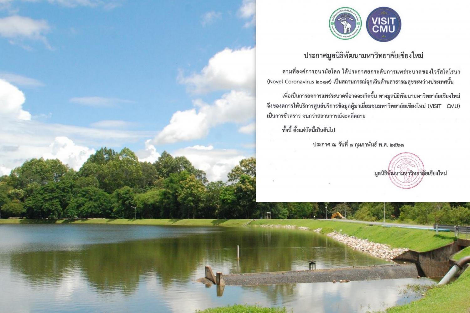 มูลนิธิพัฒนามหาวิทยาลัยเชียงใหม่ ประกาศของดให้บริการเยี่ยมชมมหาวิทยาลัยฯ ชั่วคราวหลังไวรัสโคโรนาระบาด