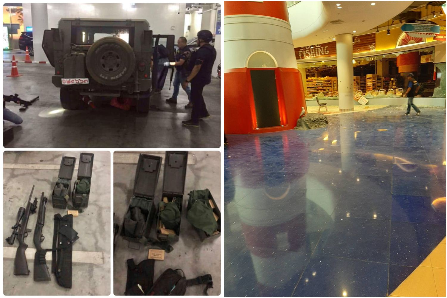 เมื่อวันที่ 9 ก.พ. 63 เวลา 12.20 น. ผู้สื่อข่าวรายงานว่า หลังจากเจ้าหน้าที่ได้วิสามัญฆาตกรรมคนร้ายกราดยิงที่ จังหวัดนครราชสีมา เจ้าหน้าที่ได้เข้าตรวจสอบรถฮัมวี่ของทางราชการที่คนร้ายขโมยมา พบอาวุธปืนและเครื่องกระสุนหลายรายการอยู่ในรถ