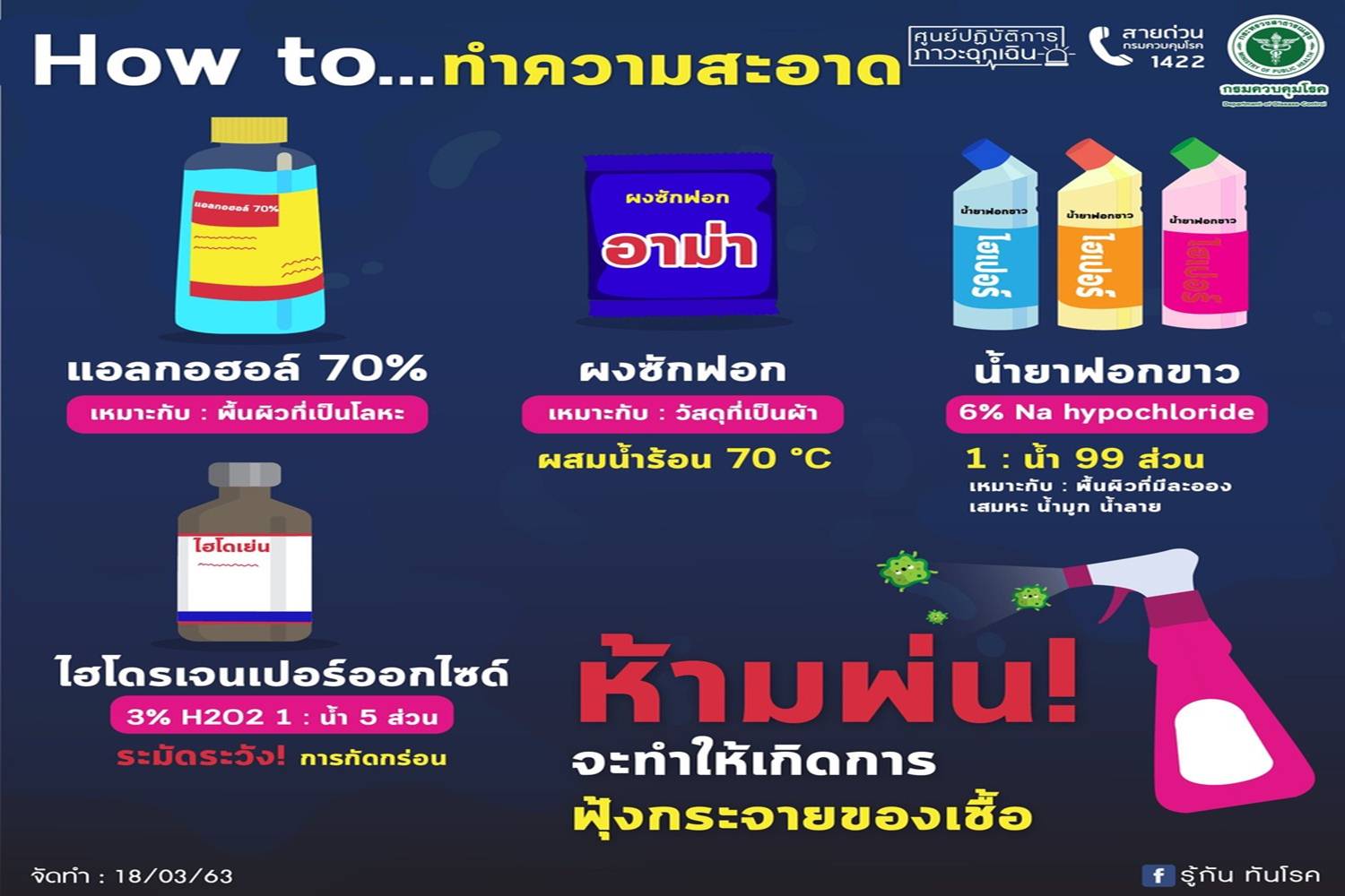 เมื่อวันที่ 18 ก.พ. 63 นายแพทย์อัษฎางค์ รวยอาจิณ รองอธิบดีและโฆษกกรมควบคุมโรค กล่าวว่า จากกรณีที่มีการฉีดพ่นละอองฝอยในสถานที่สาธารณะและสถานประกอบการนั้น ขอแนะนำว่าการฉีดพ่นละอองฝอยหรือสารเคมีแอลกอฮอล์ดังกล่าวจะทำให้ละอองฝอยฟุ้งกระจาย