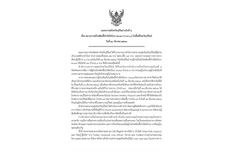บุรีรัมย์พบผู้ติดเชื้อ COVID-19 แล้ว 1 รายเป็นต่างชาติ