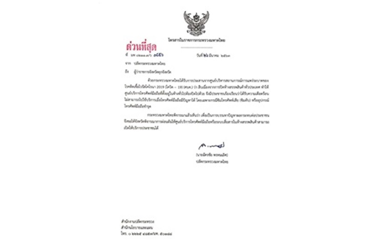 ปลัดมท.ส่งหนังสือด่วนถึงผู้ว่าราชการทุกจังหวัด ให้ผ่อนผันเปิดศูนย์บริการโทรศัพท์มือถือ หรือระบบสื่อสารในห้างฯได้ หลังประชาชนร้องเรียนมือถือมีปัญหาไม่สามารถไปใช้บริการได้