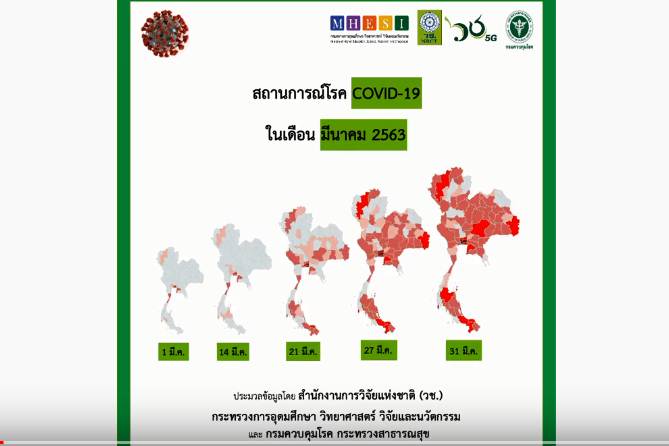 สำนักงานการวิจัยแห่งชาติ-กรมควบคุมโรคเผยแพร่คลิปวิดีโอแสดงการระบาดของโควิด-19ในไทย ตั้งแต่ช่วง 1-31มี.ค.63
