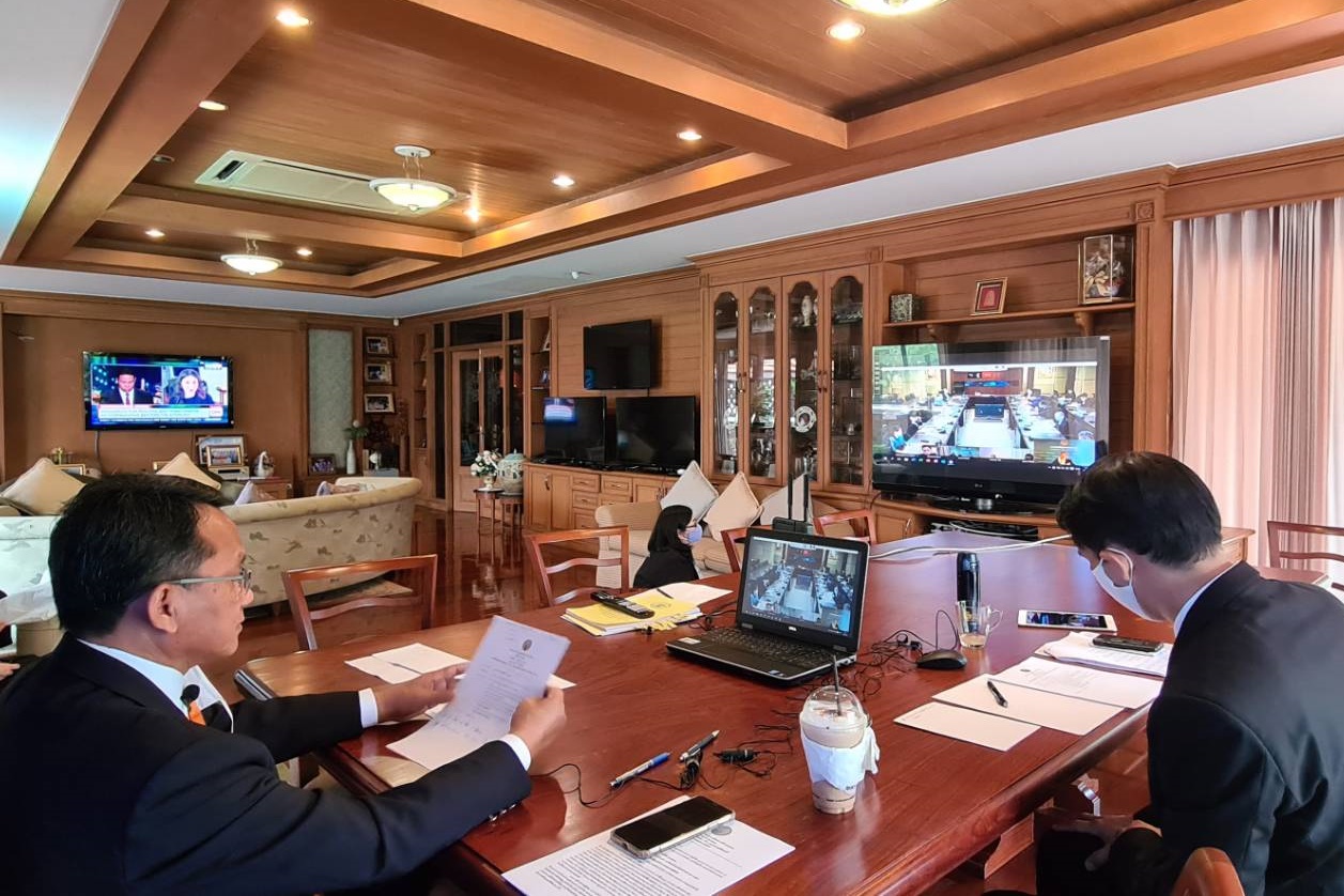 นายสมศักดิ์ เทพสุทิน รัฐมนตรีว่าการกระทรวงยุติธรรม ประชุมกระทรวงด้วยระบบ คอนเฟอเร้นท์จากที่บ้าน โดยมีนายวิศิษฏ์ วิศิษฏ์สรอรรถ ปลัดกระทรวงยุติธรรม พร้อมด้วยอธิบดีกรมต่างๆ เข้าร่วมประชุมในระบบอย่างพร้อมเพรียง