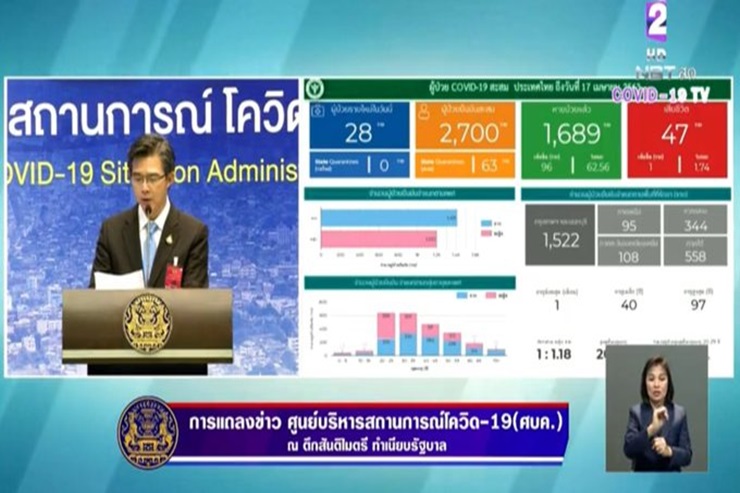 ศบค.แถลงพบผู้ป่วยติดเชื้อโควิด-19รายใหม่จำนวน 28 ราย รวมสะสม 2,700 ราย ผู้เสียชีวิตเพิ่ม 1 ราย รวม 47 ราย 27 จังหวัด ไม่พบติดเชื้อเพิ่มใน 14 วัน