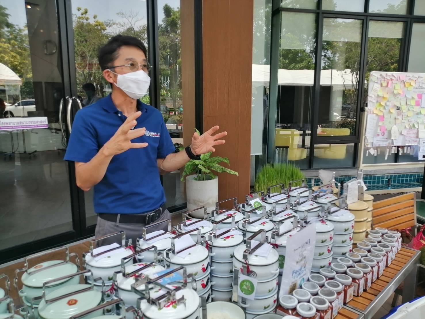 นอกจากนี้ หลังจากที่เราได้เริ่มโครงการแรกไปแล้ว เราพบว่าปัญหากล่องพลาสติกเป็นปัญหาสำคัญที่ควรได้รับการแก้ไข เนื่องจากการผลิตข้าวกล่องนี้ใช้กล่องพลาสติกจำนวนมากและสิ่งนี้จะส่งผลกระทบต่อโลกของเราต่อไป ครั้งนี้เราจะ “ผูกปิ่นโต” ส่งข้าวเพื่อลดปัญหาการทำลายสิ่งแวดล้อม และผู้ที่ได้รับยังจะสามารถนำปิ่นโตกลับไปใช้งานได้ต่อไปด้วย โดยขณะนี้ได้เริ่มที่ รพ.สนามธรรมศาสตร์เป็นแห่งแรก และขยายไปยังโรงพยาบาลอื่นๆ อย่างต่อเนื่อง