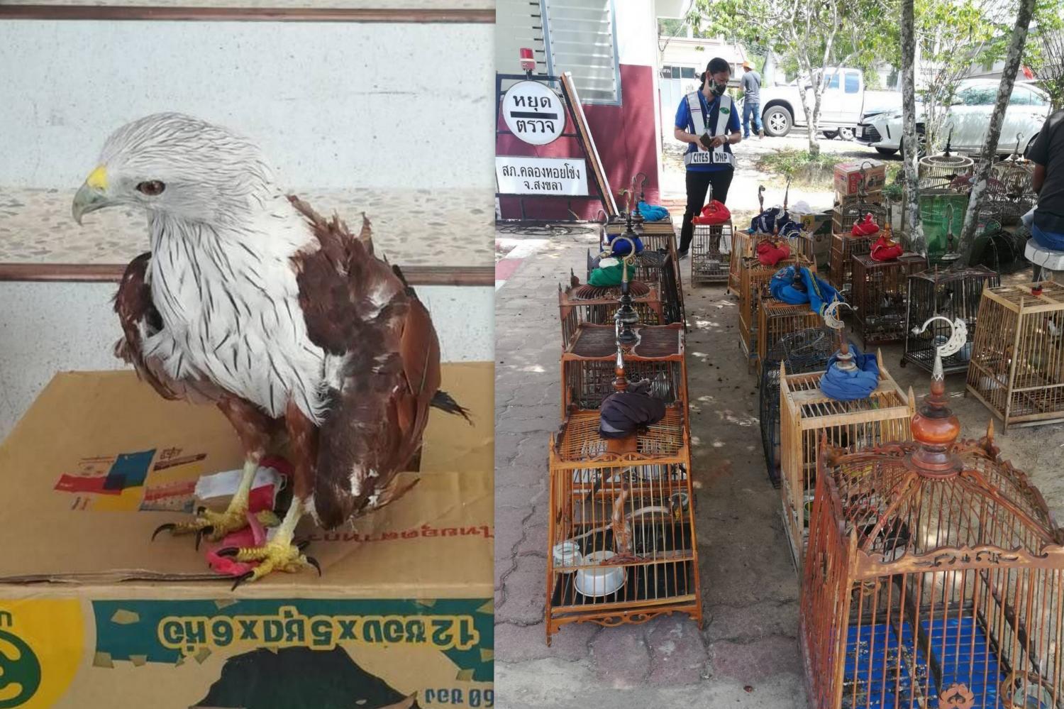 จากการตรวจยึดพบสัตว์ป่าคุ้มครอง อาทิ นกกวัก 2 ตัว , นกเขียวคราม 1 ตัว , นกปรอดหัวโขนหรือนกกรงหัวจุก 19? ตัว , นกปรอดคอลาย 4 ตัว , นกกางเขนดง 4? ตัว , นกกางเขนบ้าน 1? ตัว , นกเอี้ยงหงอน 2 ตัว , นกแซงแซวหางบ่วงใหญ่ 3 ตัว , นกเหยี่ยวแดง 1 ตัว , นกคุ่มอกลาย 1 ตัว รวมของกลางทั้งหมด 38 ตัว