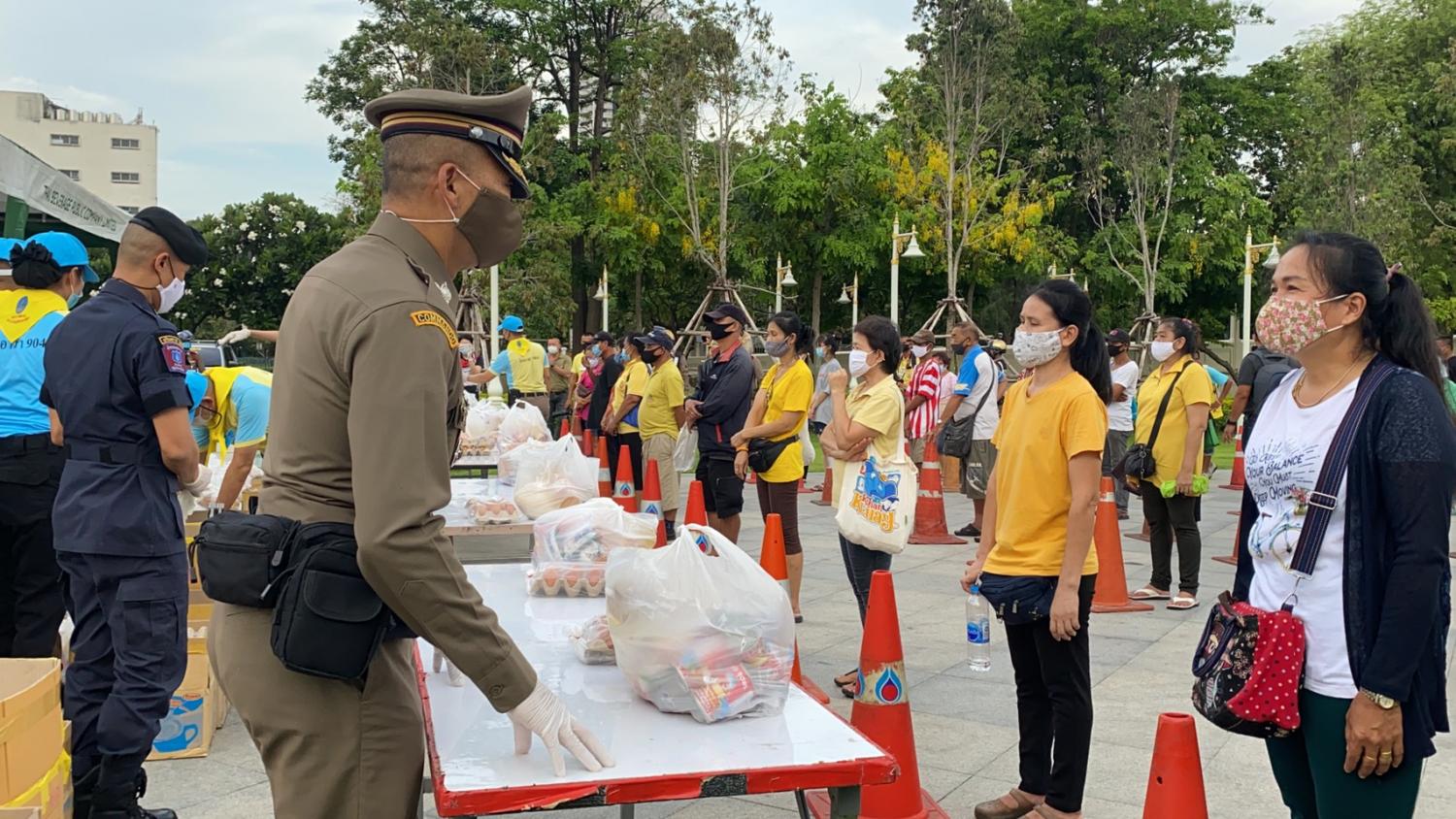 ผู้ได้รับความเดือดร้อนโควิด-19 แห่รับมอบถุงยังชีพ