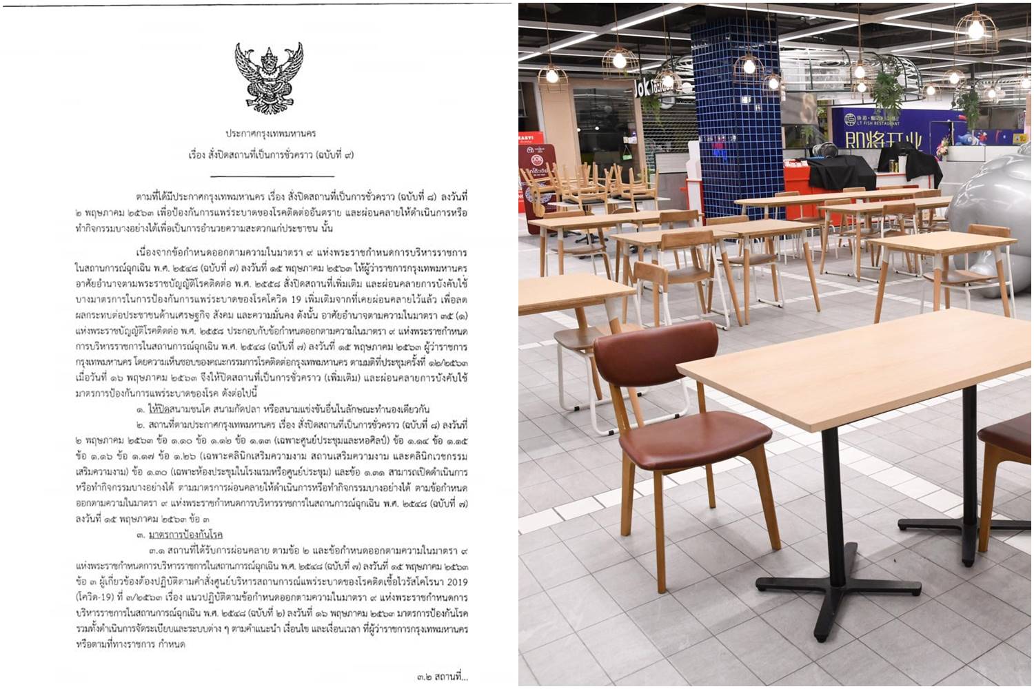 1.ร้านอาหารและเครื่องดื่ม ในห้างสรรพสินค้า ศูนย์การค้า และคอมมูนิตี้มอล์ล ให้นั่งทานได้ แต่ต้องดำเนินการตามมาตรการที่ได้ออกไปก่อนหน้านี้ และห้ามนั่งดื่มแอลกอฮอล์ภายในร้าน หากพบสั่งปิดร้านทันที