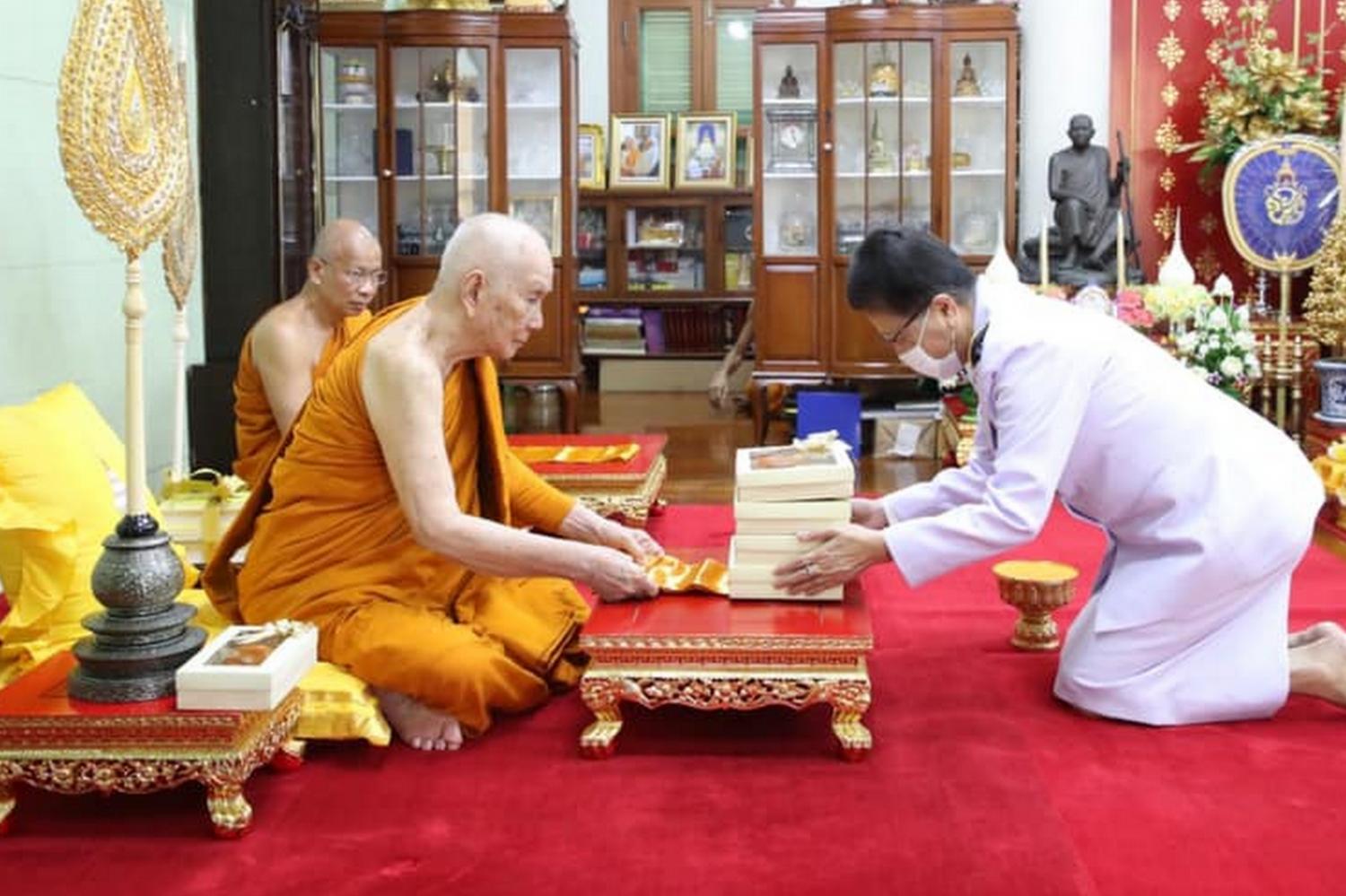 เมื่อวันที่ 17 พ.ค. พระบาทสมเด็จพระเจ้าอยู่หัว และสมเด็จพระนางเจ้าฯพระบรมราชินี ทรงพระกรุณาโปรดเกล้าฯ ให้คุณจันทนี ธนรักษ์ ผู้ช่วยราชเลขานุการในพระองค์พระบาทสมเด็จพระเจ้าอยู่หัวฯ เชิญหน้ากากผ้าฝีพระหัตถ์สมเด็จพระนางเจ้าฯ พระบรมราชินี พระราชทานมาเฝ้าถวายแด่เจ้าพระคุณ สมเด็จพระอริยวงศาคตญาณ สมเด็จพระสังฆราช สกลมหาสังฆปริณายก