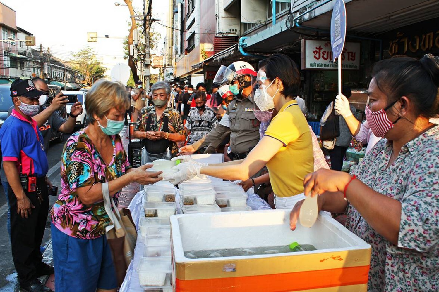 สน.พระราชวังร่วมผู้มีจิตโอบอุ้มสังคม แจกอาหารเครื่องดื่มบรรเทาความเดือดร้อนโควิด-19
