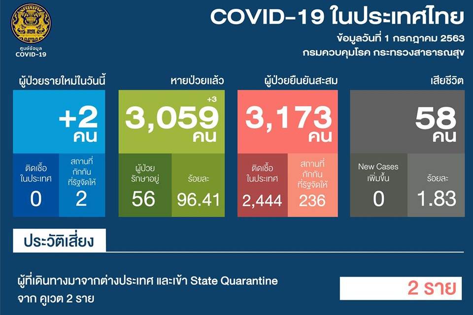 -ผู้ติดเชื้อโควิด-19รายใหม่ 2 ราย / ยอดสะสม 3,173 ราย