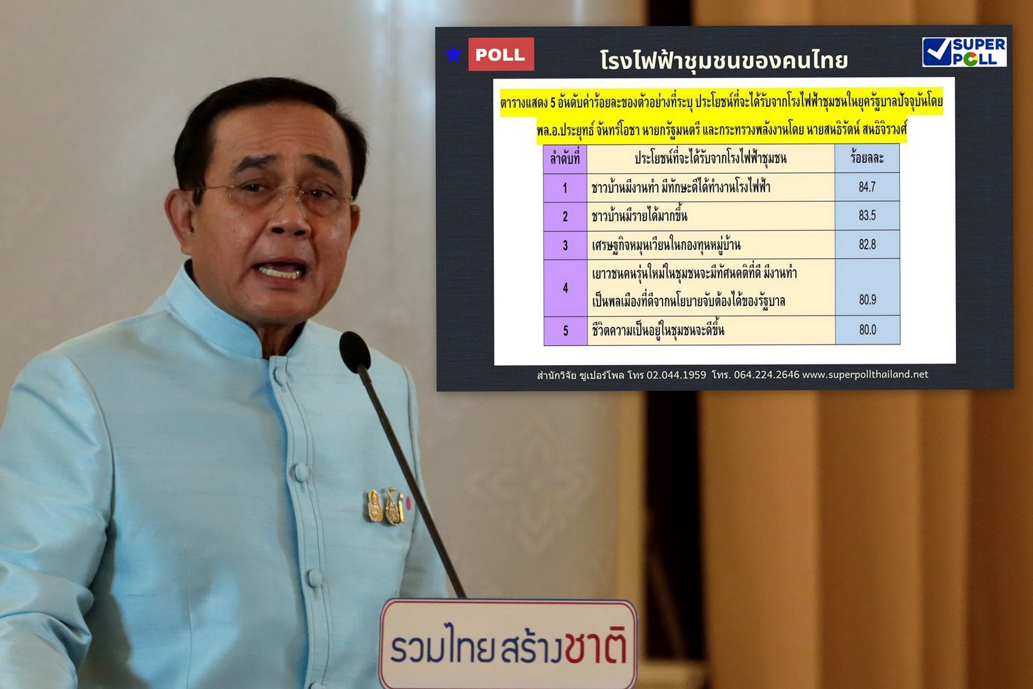 ซูเปอร์โพล เผยคนไทยต้องการให้เกิดโรงไฟฟ้าชุมชน สมัยรัฐบาลบิ๊กตู่ เน้นพลังงานสะอาด เชื่อมีส่วนทำให้วิกฤตเศรษฐกิจฟื้นตัวเร็วขึ้น