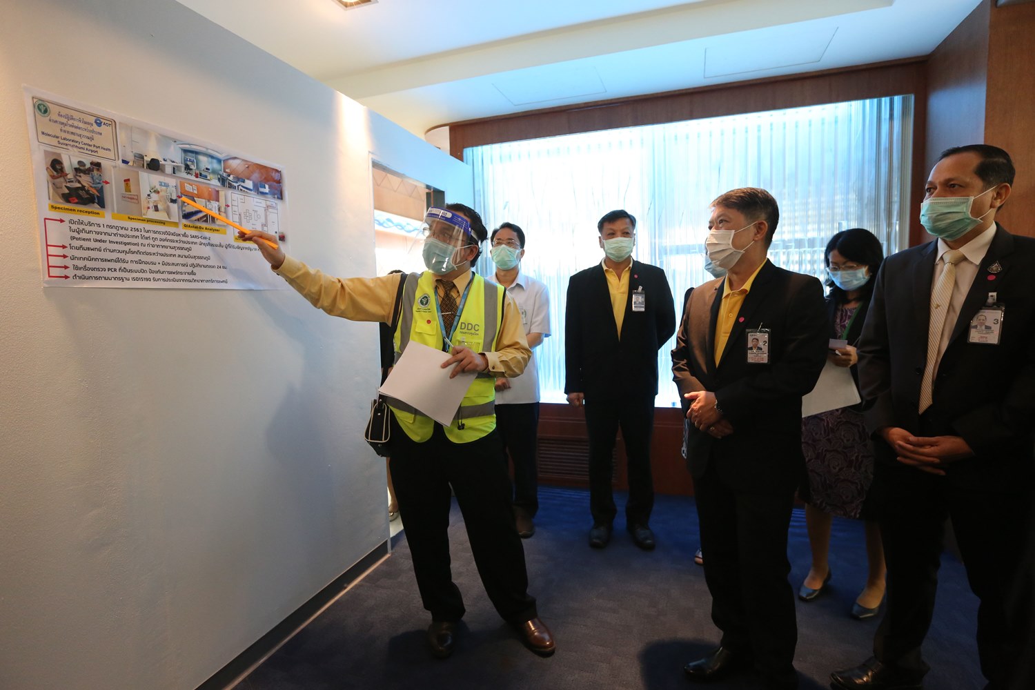 เมื่อวันที่ 21 ก.ค.นพ.สุวรรณชัย วัฒนายิ่งเจริญชัย อธิบดีกรมควบคุมโรค ตรวจความพร้อมห้องปฏิบัติการชีวโมเลกุล ด่านควบคุมโรคติดต่อระหว่างประเทศ ท่าอากาศยานสุวรรณภูมิ ที่เปิดให้บริการตั้งแต่วันที่ 1 ก.ค.ที่ผ่านมา เพื่อใช้ในการตรวจหาเชื้อโควิด-19 สำหรับผู้ที่เดินทางมาจากต่างประเทศ ได้แก่ ทูต องค์กรระหว่างประเทศ นักธุรกิจระยะสั้น ผู้ที่ได้รับเชิญจากรัฐบาล หรือผู้สงสัยติดเชื้อ