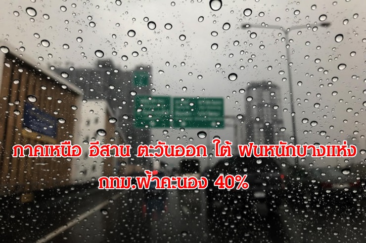 อุตุฯ เผย ภาคเหนือ อีสาน ตะวันออก ใต้ ฝนหนักบางแห่ง กทม.40%