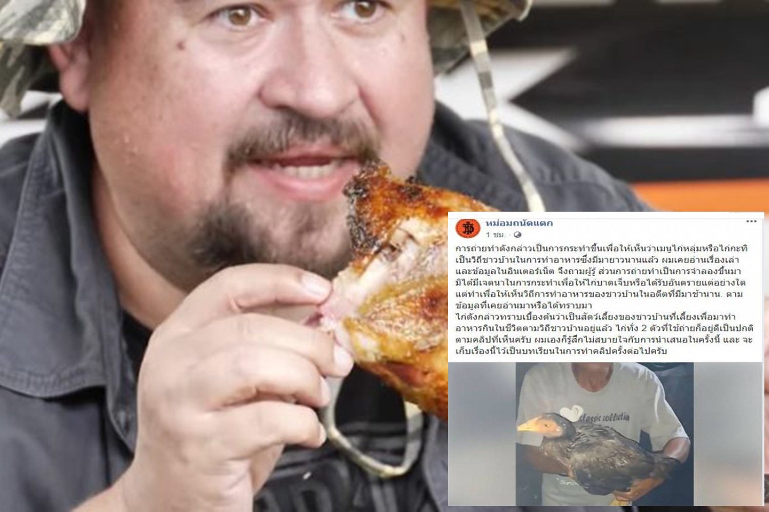 ด้าน นายสหัสวรรษ หรือหม่อมถนัดแดก ได้ชี้แจงเหตุการณ์ที่เกิดขึ้นว่า การถ่ายทำเพื่อให้เห็นว่าเมนูไก่หลุม เป็นวิถีชาวบ้านในการทำอาหารซึ่งมีมายาวนานแล้ว ส่วนการถ่ายทำเป็นการจำลองเหตุการณ์ขึ้นมามิได้มีเจตนาในการกระทำเพื่อให้ไก่บาดเจ็บหรือได้รับอันตรายแต่อย่างใด แต่ทำเพื่อให้เห็นวิถีการทำอาหารของชาวบ้านในอดีตที่มีมาช้านาน ตามข้อมูลที่เคยได้ทราบมา ซึ่งไก่ทั้ง 2 ตัวที่ใช้ถ่ายทำยังมีชีวิตอยู่ดีเป็นปกติ