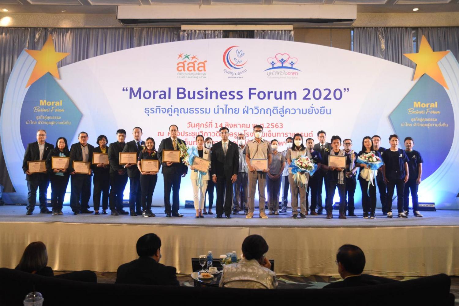 เมื่อวันที่ 14 ส.ค.ศูนย์คุณธรรม (องค์กรมหาชน) ร่วมกับ สำนักงานกองทุนสนับสนุนการสร้างเสริมสุขภาพ (สสส.) และมูลนิธิหัวใจอาสา ร่วมจัดกิจกรรม "Moral Business Forum 2020" ธุรกิจคู่คุณธรรม นำไทย ฝ่าวิกฤตสู่ความยั่งยืน โดยเชิญนักธุรกิจชั้นนำของประเทศที่ประสบความสำเร็จในการทำธุรกิจอย่างมีคุณธรรม มาร่วมแชร์ประสบการณ์ทำงานเพื่อสร้างแรงบันดาลใจ ประกอบด้วย ดร.วิภาภรณ์ เกียรติอำนวย รองกรรมการบริหารบริษัท เจ.เอช. อุตสาหกรรม จำกัด ดร.อัสนียา สุวรรณศิริกุล ที่ปรึกษาบริษัท สมบูรณ์ แอ๊ดวานซ์ เทคโนโลยี จำกัด(มหาชน) ดร.สมโภชน์ วัลยะเสวี ประธานเจ้าหน้าที่บริหาร บริษัท สตาร์เฟล็กซ์ จำกัด(มหาชน) นางอรจรรยา จันทวรสุทธิ์ กรรมการผู้จัดการ บริษัทรักษาความปลอดภัย กรุงไทยธุรกิจบริการ จำกัด และดร.วรวัฒน์ ชิ้นปิ่นเกลียว ประธานเจ้าหน้าที่บริหาร บริษัท ไทยโคโคนัท จำกัด(มหาชน) ณ โรงแรมเซ็นทรารา แกรนด์ แอท เซ็นทรัลพลาซาลาดพร้าว