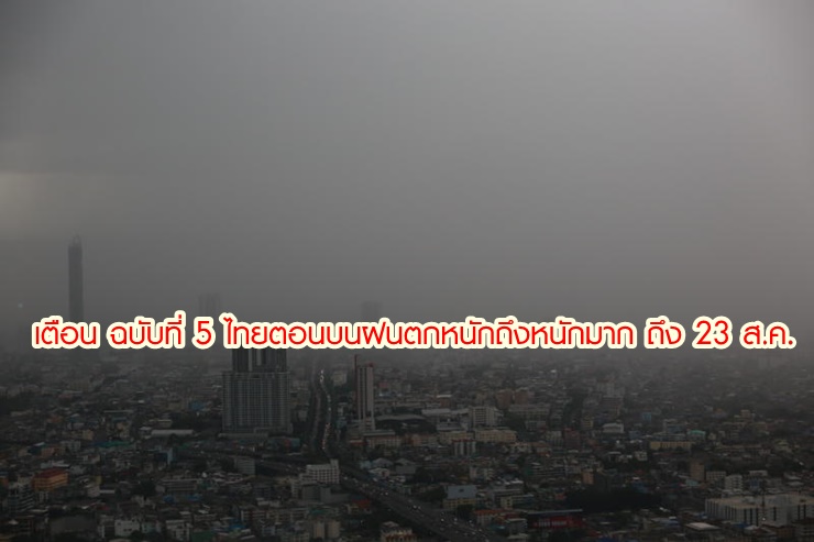 ประกาศกรมอุตุฯ ฉบับที่ 5 ไทยตอนบนฝนตกหนักถึงหนักมาก ถึง 23 ส.ค. เตือน 35 จังหวัด ภภาคเหนือ อีสาน กลาง ตะวันออก เสี่ยงน้ำท่วมฉับพลัน น้ำป่าไหลหลาก