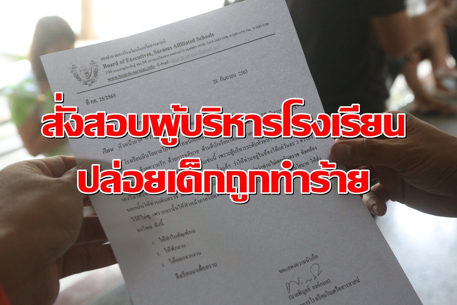 ประธานอำนวยการโรงเรียนในเครือสารสาสน์ สั่งตรวจสอบผู้บริหารโรงเรียนไม่ใส่ใจปล่อยให้เด็กถูกทำร้าย พร้อมระบุโทษชัดเจน ชี้ให้อยู่ในห้องได้แค่วันละ 2 ชม. นอกนั้นต้องเดินตรวจโรงเรียน