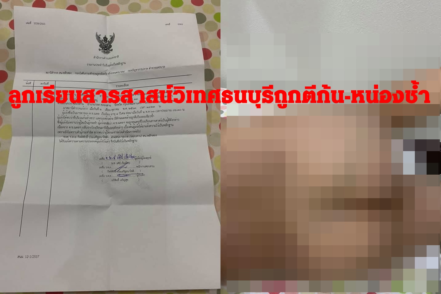 แม่เครียดลูก4ขวบเรียนสารสาสน์วิเทศธนบุรีถูกตีก้น-หน่องช้ำ โร่แจ้งความขอลงบันทึกประจำวัน ผอ.โรงเรียนขอพบเพื่อชี้แจง6ต.ค.นี้